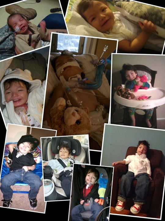 On August 12, 2009 my son John Anthony was born in Germany due to his dad being stationed there. My entire pregnancy we were told that we were having a perfectly healthy child. At birth we noticed that he did not have a right ear, it was completely shut where his ear should have been, we instantly new something was wrong but never expected how things really were. When he was 2 weeks old his Genetic testing came back and he was diagnosed with Cri du Chat Syndrome which is a very rare syndrome. In November he became very sick with Pneumonia, Doctors both Military and German did not believe that he could survive this Pneumonia and John and I returned to Los Angeles, CA to seek better healthcare and a slight possibility of him surviving. We arrived in CA a week before Christmas 2009. In January I took him to the ER because the Pneumonia returned, he was then transferred to Loma Linda Children's Hospital which was a better equipped hospital. His dad was sent on Emergency Leave to be by his bedside as his future was unknown. John was taken to surgery to correct an obstruction in his airway but the surgery failed and they had to place a tracheostomy for him to be able to breathe, his father had to return to Germany within 12 hours of the surgery while John was still in a coma. On our way to the airport we got a phone call that his condition had worsened and they had to do 2 emergency blood transfusions. At this point John was 5 months and only weighed 5.7lbs so he was a very fragile little boy. A feeding tube was place shortly after. during 2010 John spent about 90% of the time in the hospital. In September 2010 I became pregnant with our daughter. John's health was worsening again and he was not tolerating his feeds and losing weight very quickly so in January John was hospitalized for his rapid weight loss and spent 3 weeks in the hospital. The day before John was discharged from the hospital his father served me with divorce papers and I was 4 months pregnant. On June 2nd 2011 I went into labor with out daughter, when my water broke they noticed that their was meconium in the water and that her heart rate was decreasing rapidly but thankfully she was born perfectly healthy. On June 19th 2011 John was hospitalized to have his trach removed but 2 days later John suffered 2 strokes. It took them over 15 minutes to resuscitate him. He was put on life support and spent 13 days in a come. When he woke up he was basically a vegetable, he no longer recognized anyone or interacted with us. He went home 3 weeks later but was still not tolerating his feeds. I would have to feed him every hour 24 hours a day. It took over a year for him to remember what he use to do before the stroke. He is now 4 years old and is still not able to sit down, walk, eat by himself, or do anything by himself. I feed him every 2 hours around the clock. He has done things that doctors said he would never do and is still alive after 3 close calls with death. He is my miracle.